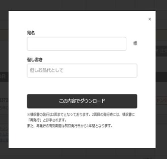 ・宛名と但書を入力して、下のダウンロードボタンをクリック