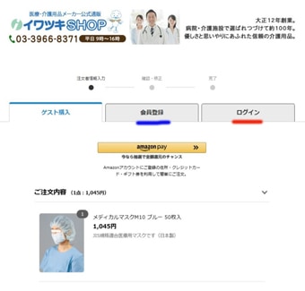 ・TOPページ右上の『ログイン』『マイページ』または、買い物の『ログイン』をクリニック(赤線)